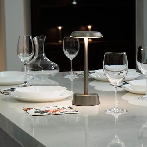 An spinning aluminum cordless table lamp offers portable lighting without the hassle of cords. It's sleek, lightweight, and battery-powered for easy placement anywhere. Perfect for modern spaces or outdoor settings, it provides convenient illumination without the need for an outlet.