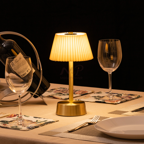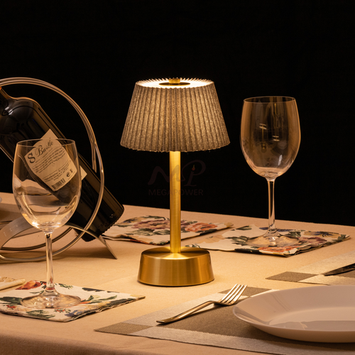 An spinning aluminum cordless table lamp offers portable lighting without the hassle of cords. It's sleek, lightweight, and battery-powered for easy placement anywhere. Perfect for modern spaces or outdoor settings, it provides convenient illumination without the need for an outlet.