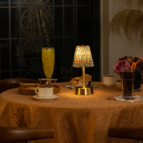 An spinning aluminum cordless table lamp offers portable lighting without the hassle of cords. It's sleek, lightweight, and battery-powered for easy placement anywhere. Perfect for modern spaces or outdoor settings, it provides convenient illumination without the need for an outlet.