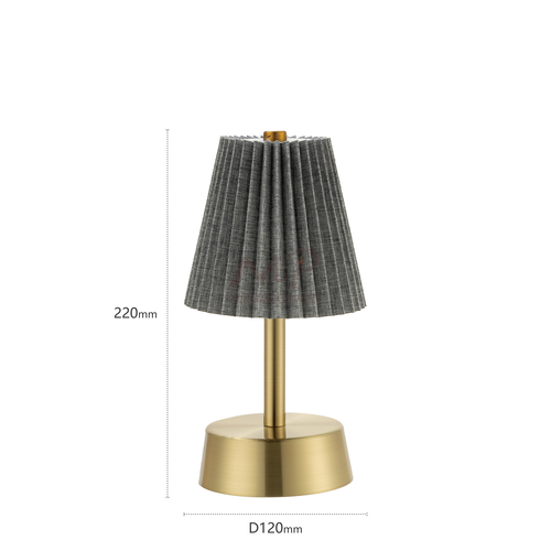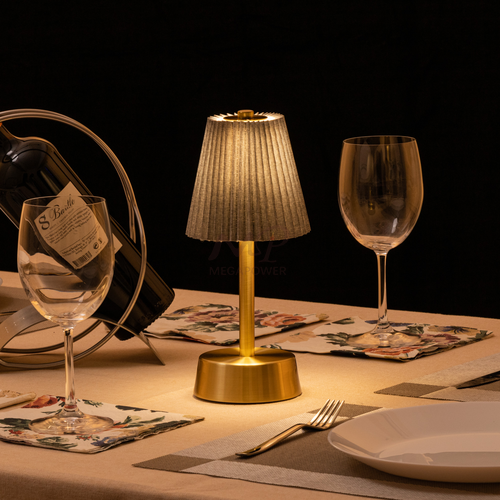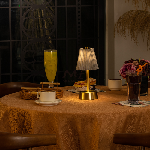 An spinning aluminum cordless table lamp offers portable lighting without the hassle of cords. It's sleek, lightweight, and battery-powered for easy placement anywhere. Perfect for modern spaces or outdoor settings, it provides convenient illumination without the need for an outlet.