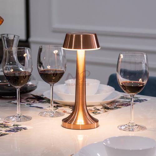 An spinning aluminum cordless table lamp offers portable lighting without the hassle of cords. It's sleek, lightweight, and battery-powered for easy placement anywhere. Perfect for modern spaces or outdoor settings, it provides convenient illumination without the need for an outlet.