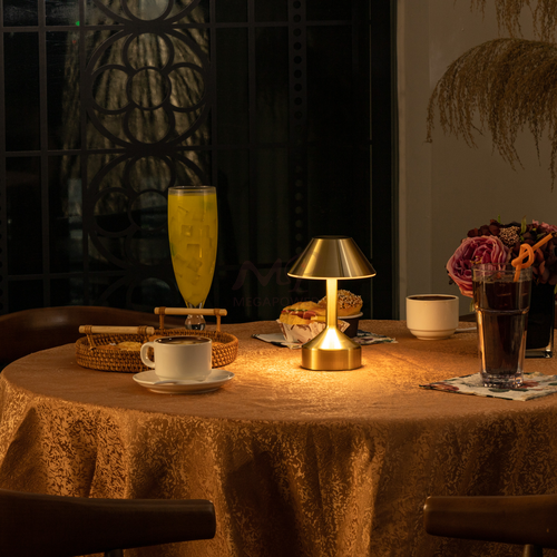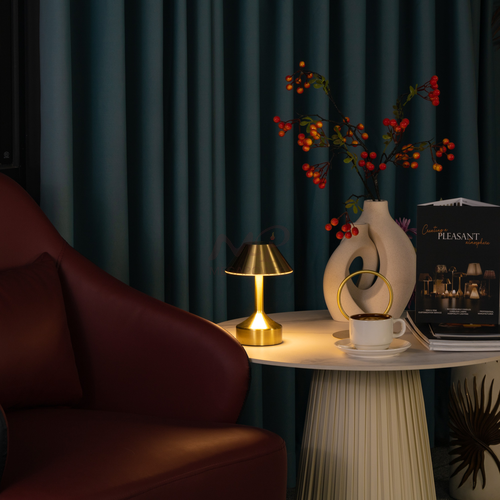 An spinning aluminum cordless table lamp offers portable lighting without the hassle of cords. It's sleek, lightweight, and battery-powered for easy placement anywhere. Perfect for modern spaces or outdoor settings, it provides convenient illumination without the need for an outlet.