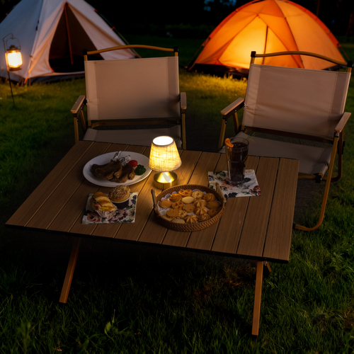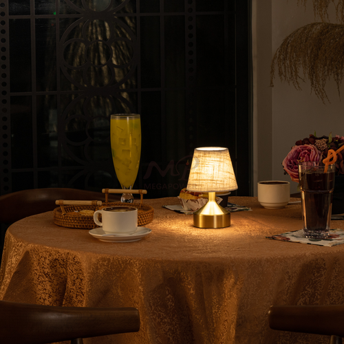 An spinning aluminum cordless table lamp offers portable lighting without the hassle of cords. It's sleek, lightweight, and battery-powered for easy placement anywhere. Perfect for modern spaces or outdoor settings, it provides convenient illumination without the need for an outlet.