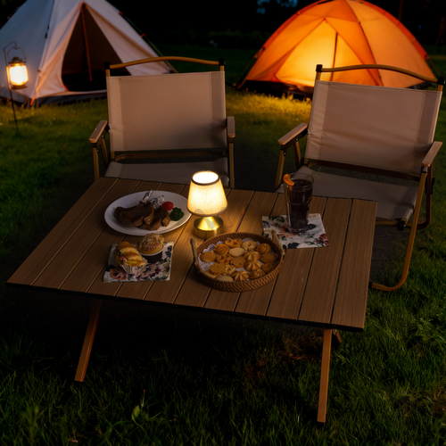 An spinning aluminum cordless table lamp offers portable lighting without the hassle of cords. It's sleek, lightweight, and battery-powered for easy placement anywhere. Perfect for modern spaces or outdoor settings, it provides convenient illumination without the need for an outlet.