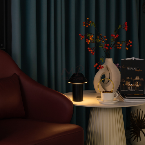 An spinning aluminum cordless table lamp offers portable lighting without the hassle of cords. It's sleek, lightweight, and battery-powered for easy placement anywhere. Perfect for modern spaces or outdoor settings, it provides convenient illumination without the need for an outlet.