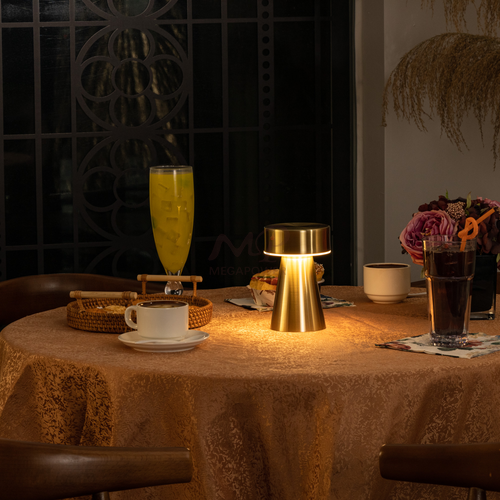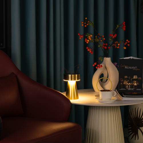 An spinning aluminum cordless table lamp offers portable lighting without the hassle of cords. It's sleek, lightweight, and battery-powered for easy placement anywhere. Perfect for modern spaces or outdoor settings, it provides convenient illumination without the need for an outlet.